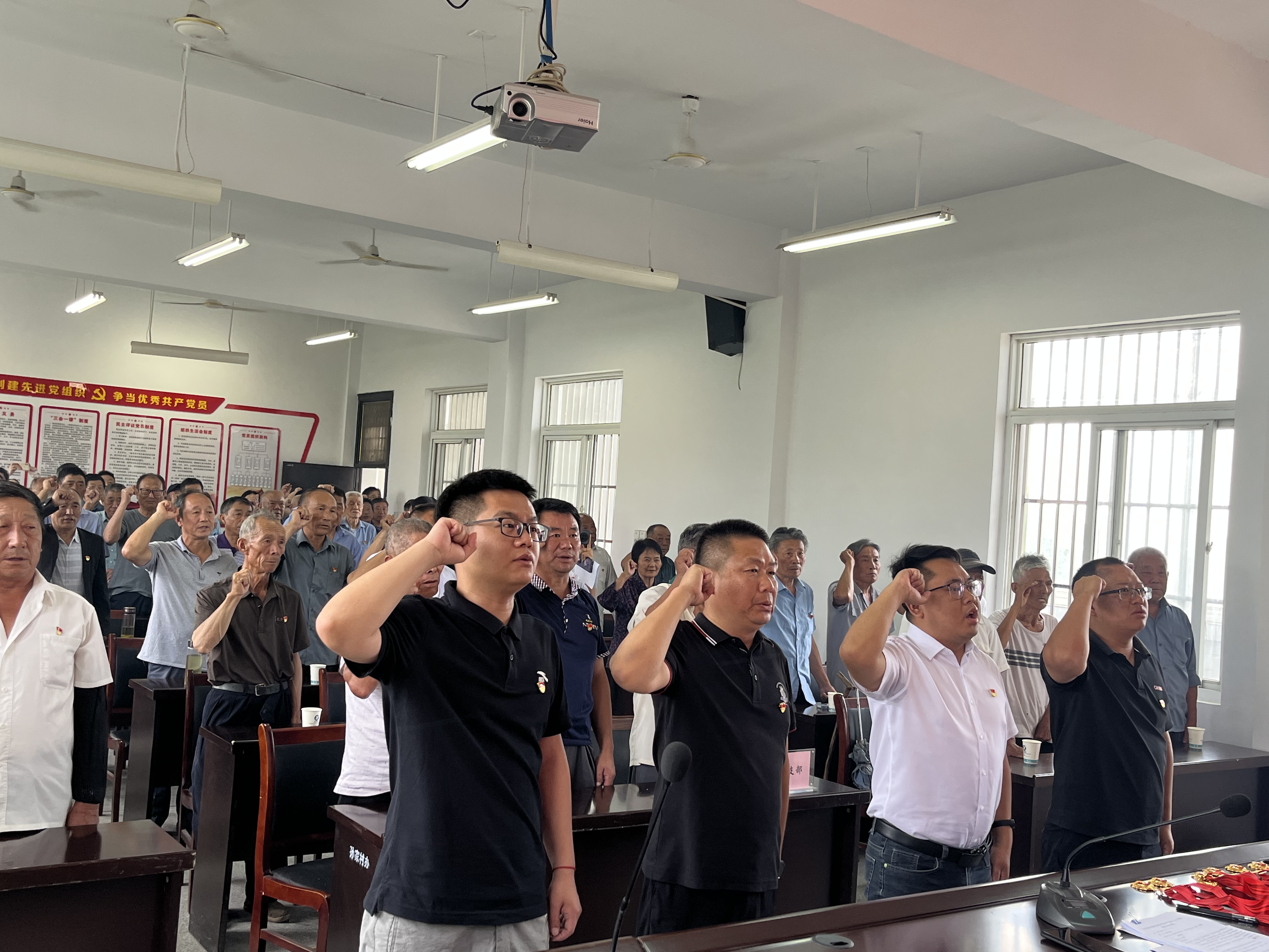 全體黨員緊握右拳,面向鮮紅的黨旗重溫了入黨誓詞;在全體黨員的見證下,孫家村黨總支書記趙陽、興全礦業(yè)黨支部副書記許登科向7位老黨員同志頒發(fā)了“光榮在黨50周年”紀(jì)念章,激勵廣大黨員進(jìn)一步堅(jiān)定對黨的忠誠熱愛和為共產(chǎn)主義事業(yè)奮斗終身的理想信念。