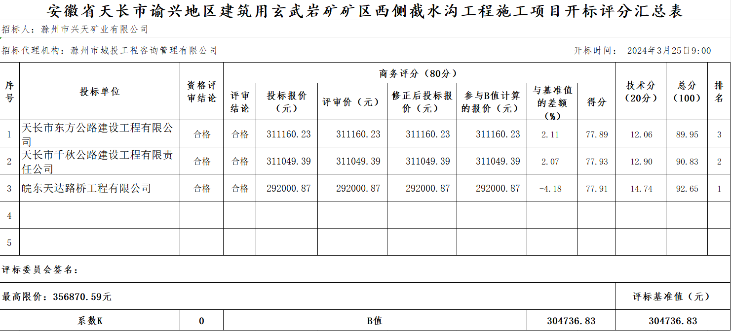| 第三中標(biāo)候選人 | 投標(biāo)人名稱(chēng) | 天長(zhǎng)市東方公路建設(shè)工程有限公司 | |