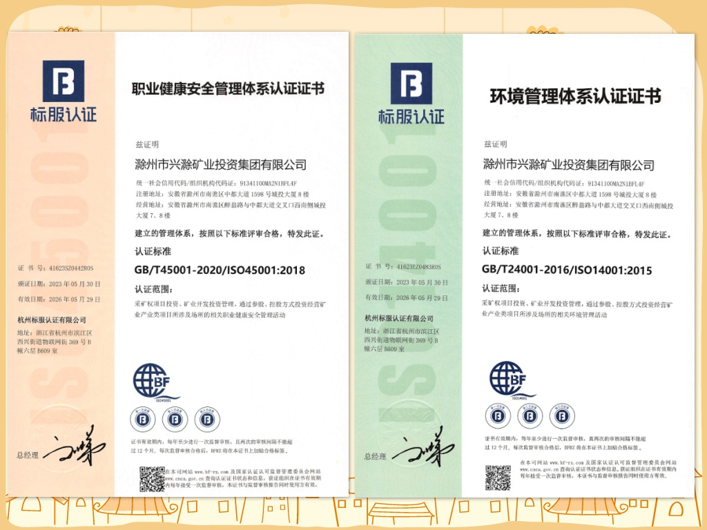 近日,市礦投集團(tuán)順利通過了ISO14001環(huán)境管理體系和ISO45001職業(yè)健康安全管理體系認(rèn)證,并獲認(rèn)證證書,標(biāo)志著集團(tuán)公司在安全及環(huán)保管理精細(xì)化、制度化、規(guī)范化方面邁上了新的臺(tái)階。