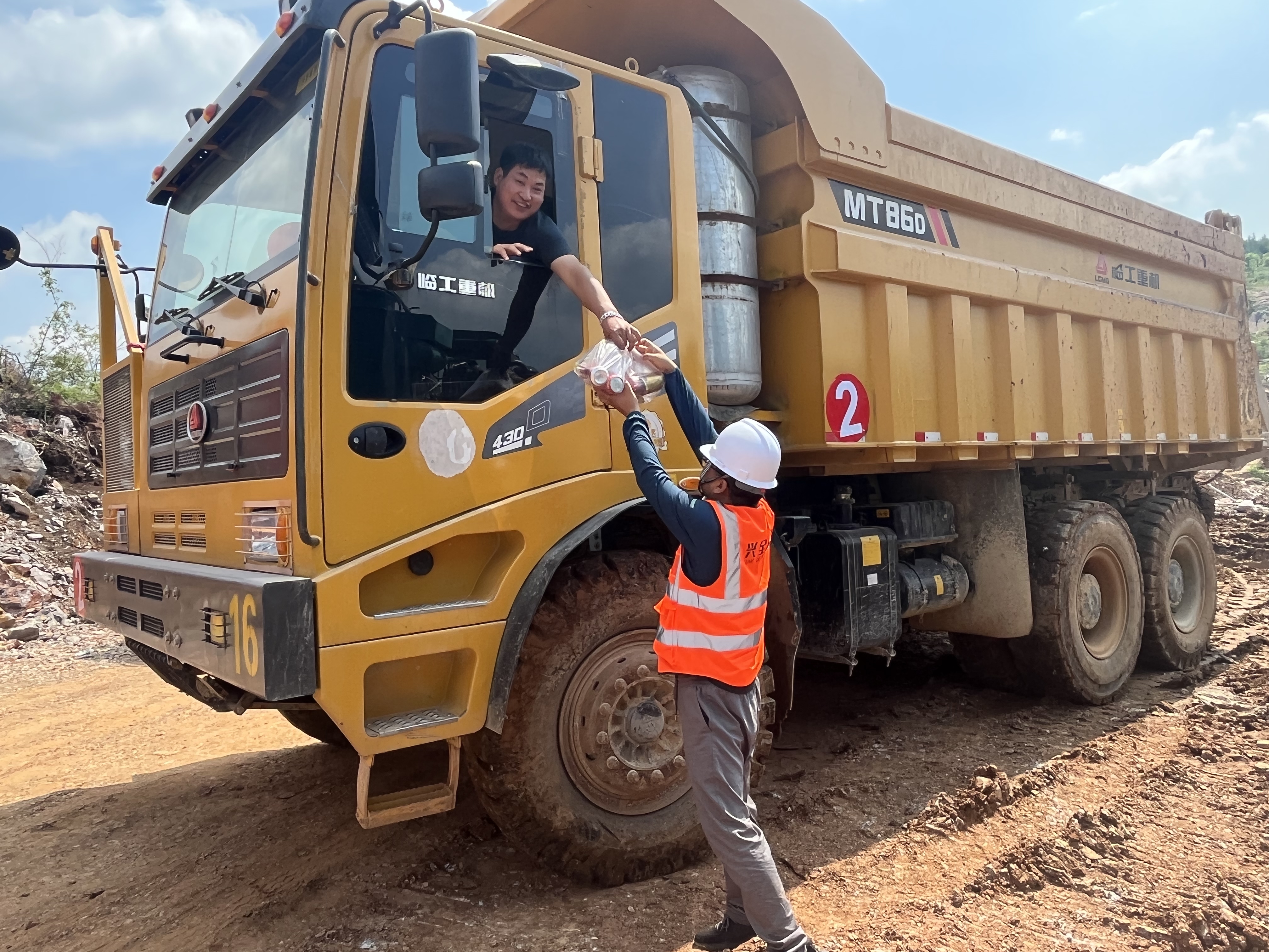 活動(dòng)中,公司總經(jīng)理陳昌富先后來到馬塘湖礦各裝車點(diǎn)、鉆孔作業(yè)平臺(tái)、磅房等地,為在高溫酷暑下堅(jiān)守工作崗位的一線職工、挖機(jī)駕駛員、鉆孔作業(yè)人員、貨運(yùn)司機(jī)等130余人送上夏日的清涼與問候,叮囑他們提高安全意識,注意個(gè)人安全防護(hù)的同時(shí)做好防暑措施,確保度過一個(gè)安全、健康、清涼的夏季。