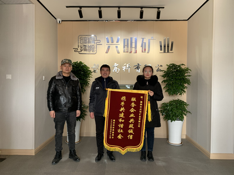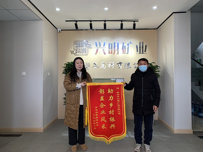 1月17日,澗溪鎮(zhèn)姚郭村、蒲塘村、九塘村村委會(huì)負(fù)責(zé)人將三面錦旗送至滁州市興明礦業(yè)有限公司,感謝興明礦業(yè)在鄉(xiāng)村振興、村企聯(lián)建、助農(nóng)扶貧等方面做出的貢獻(xiàn)。