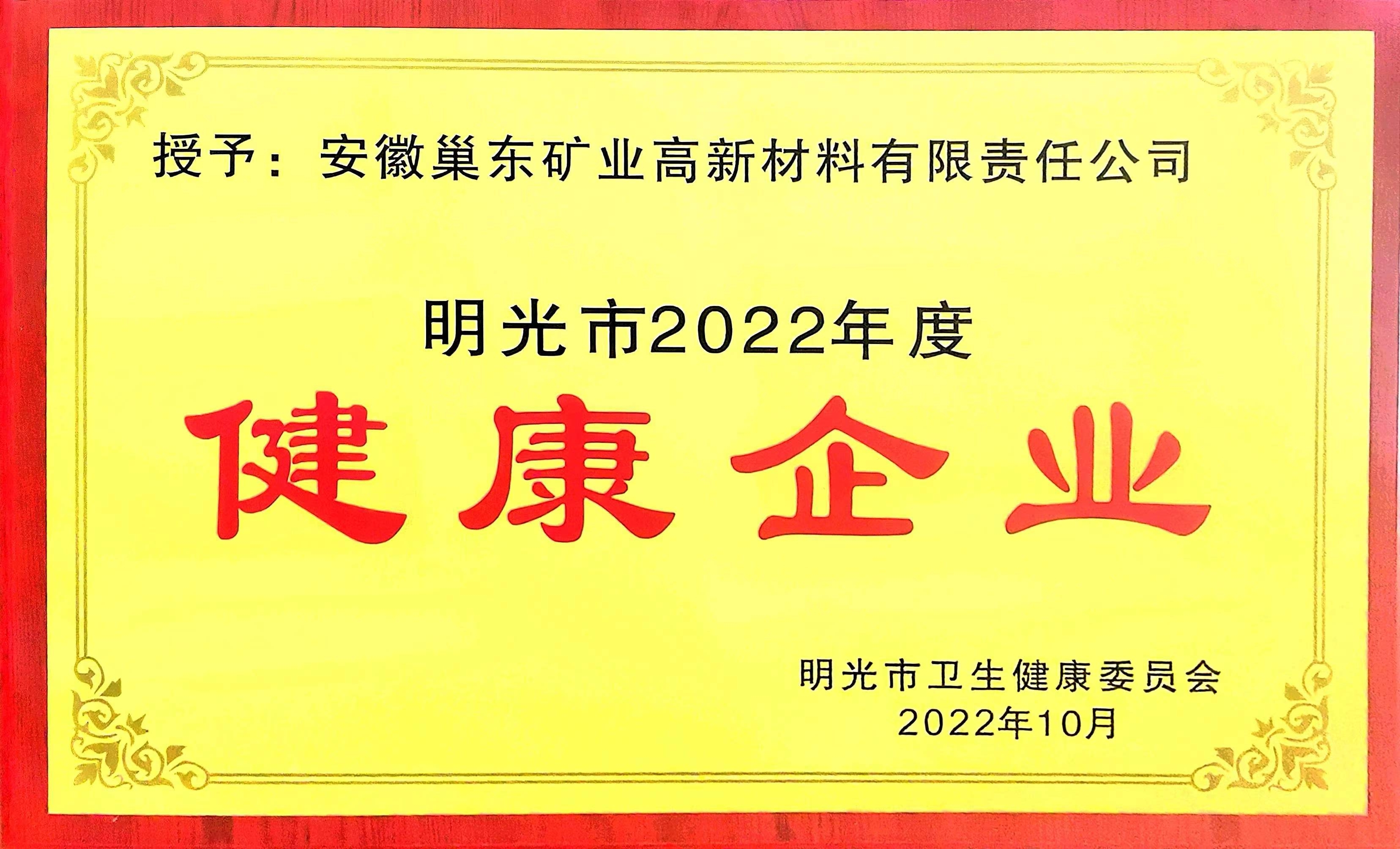 3月17日,2022年明光市健康企業(yè)表彰儀式在明光市舉行,滁州市興明礦業(yè)有限公司下屬全資子公司安徽巢東礦業(yè)高新材料有限責(zé)任公司榮獲“2022年度明光市健康企業(yè)”榮譽(yù)稱(chēng)號(hào)。